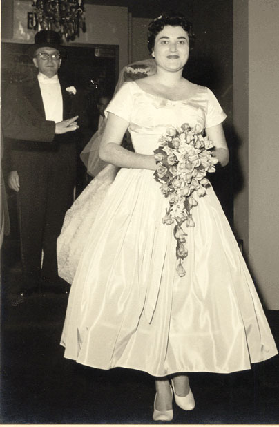 Ben - Photos/ben006 Rita Fleishman (daughter of Harry son of Benjamin son of Max) at her wedding in 1954 with her Uncle William (son of Benjamin son of Max) in the background |